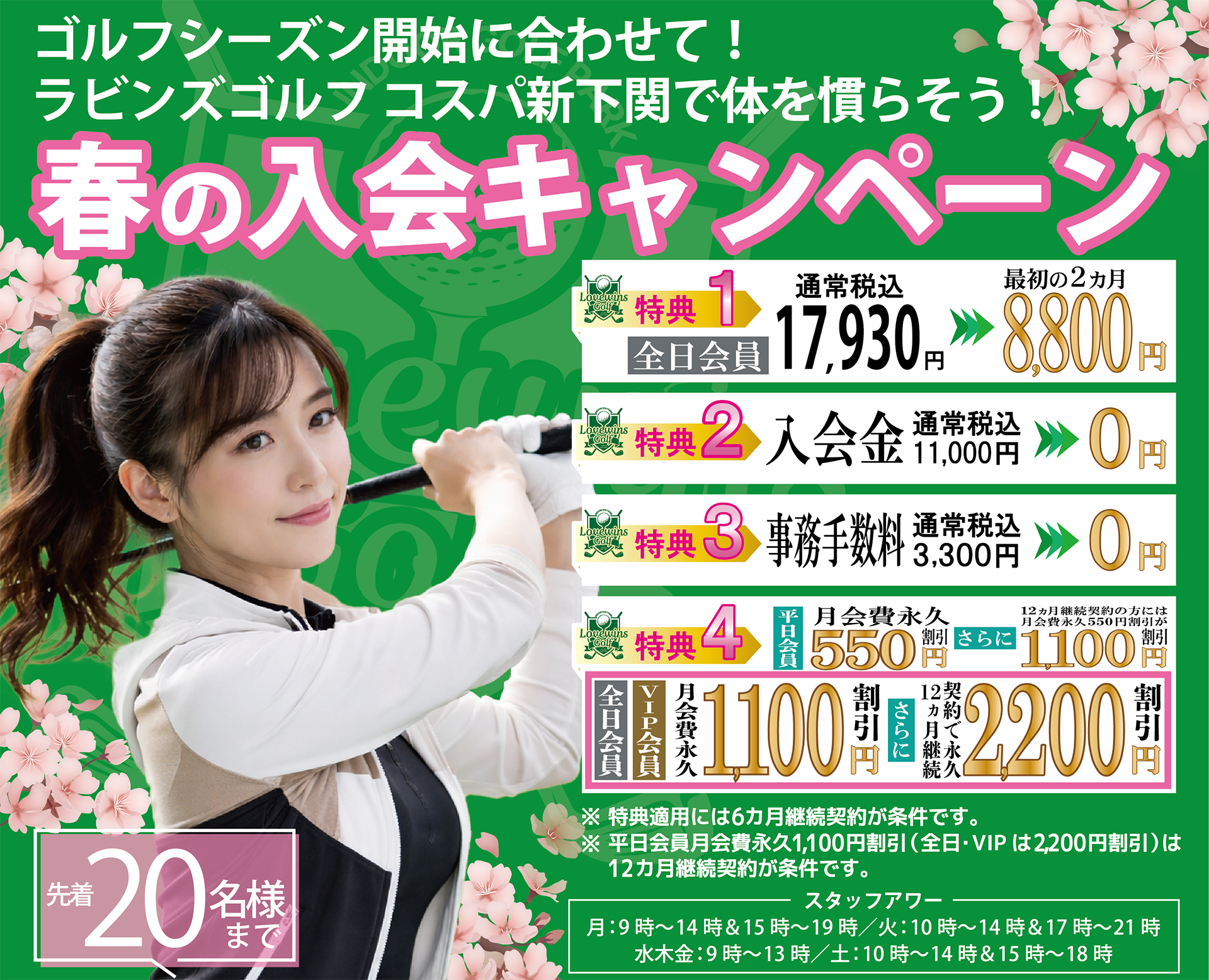 | 店舗名 | ラビンズゴルフ コスパ新下関店 | 営業時間 | 24時間 |
